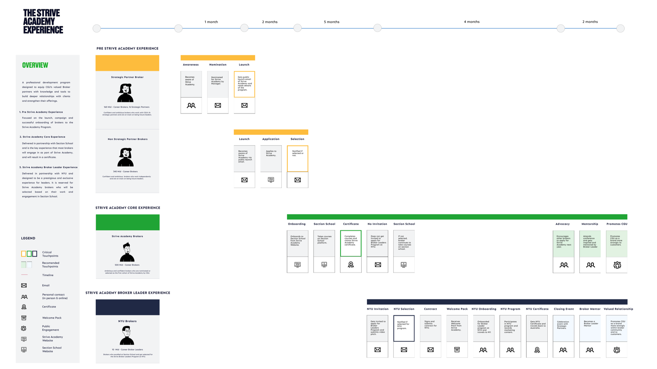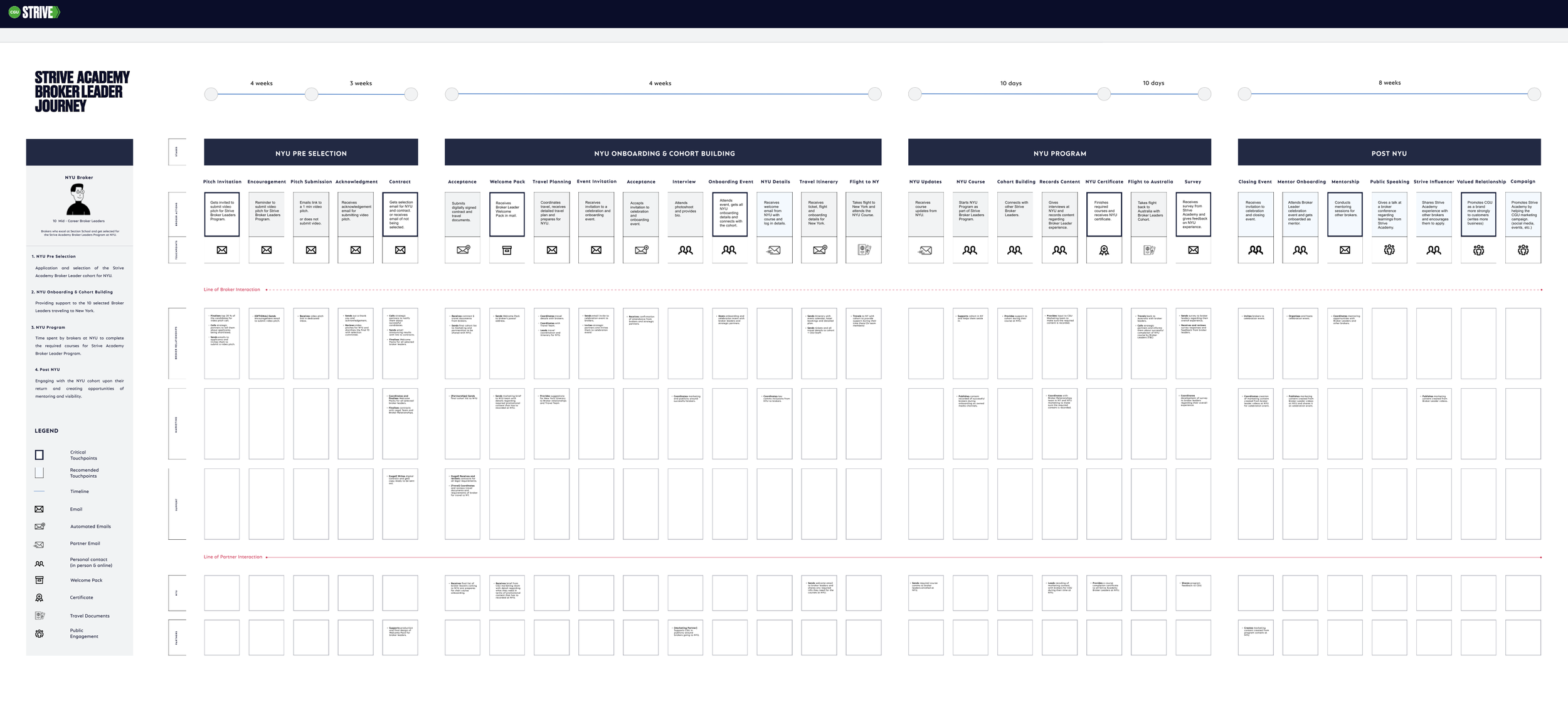 A thoughtful and detailed approach to collaboration design and relationship building was taken throughout. I led several iterative rounds of workshops and consultations with all stakeholders. Based on our research insights I created and refined a high level service flow and a comprehensive blueprint with the defined key broker journeys, along with critical and recommended touch points.